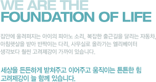 1945년 설립된 고려제강은 자동차, 교량, 에너지, 건축, 전기, 전자 등 다양한 산업분야에 중요한 소재로 사용되는 경강선재 제품을 생산하여 세계 80여 개국에 수출하고 있는 세계적인 글로벌기업입니다. |